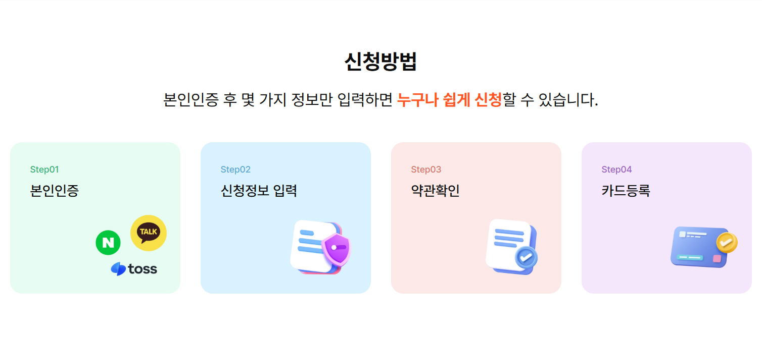 본인인증 후 몇 가지 정보만 입력하면 누구나 쉽게 신청할 수 있습니다.
