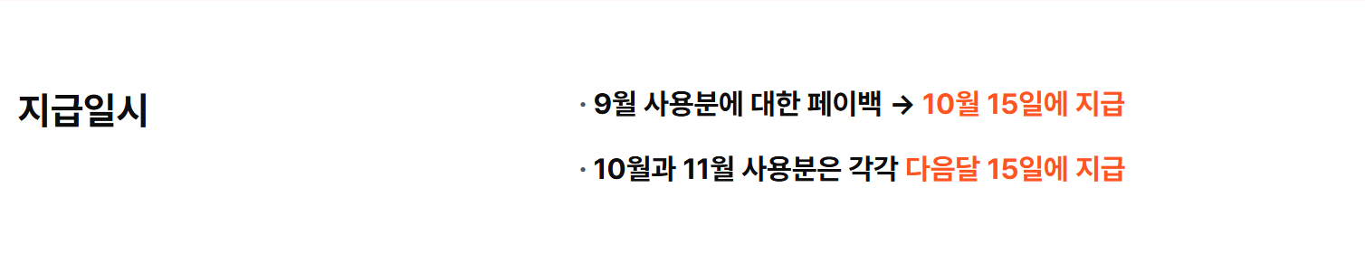 2) 11.30(일)까지 신청 시 9~10월 페이백 소급 지급