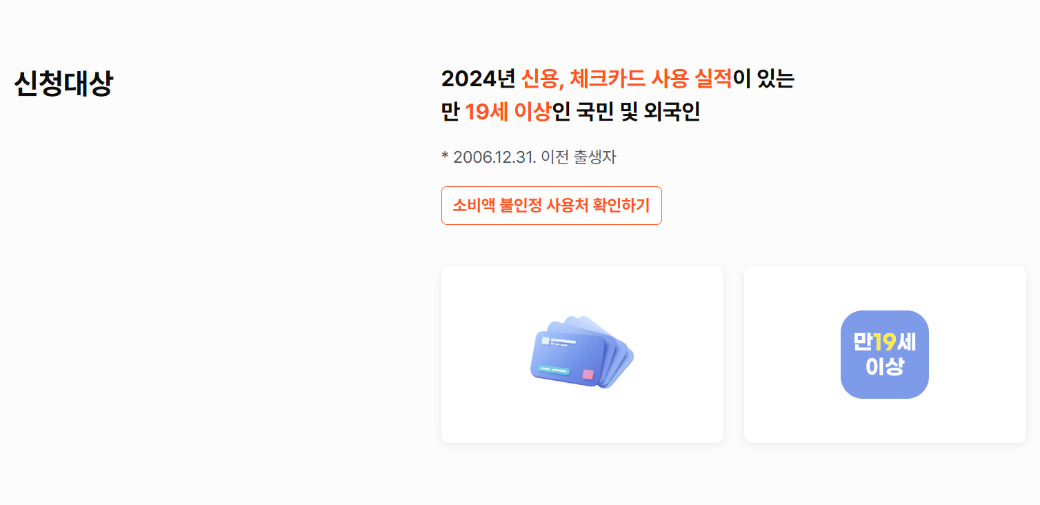 * 신청 시 개인이 보유한 모든 국내 신용·체크카드 사용액이 자동으로 합산됨