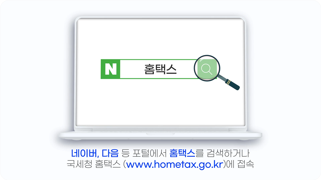 네이버 다음 등 포털에서 홈택스를 검색하여 국세청 홈택스에 접속하세요.